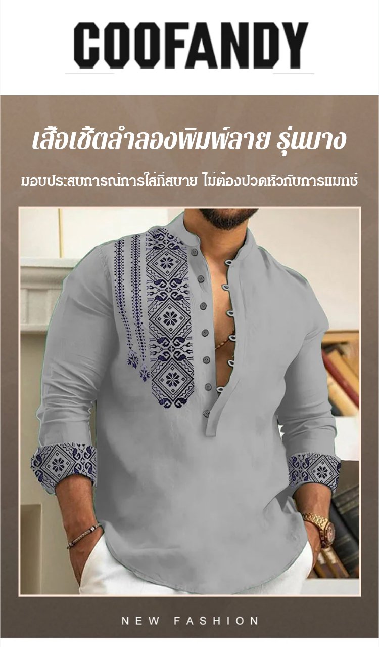 เสื้อเชิ้ตลำลองพิมพ์ลาย 3D รุ่นบาง ดูเป็นผู้ใหญ่